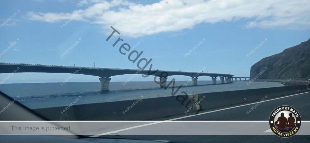 L’arrivée sur Saint Denis nous fait passer devant la nouvelle route du littoral (gouffre financier) …