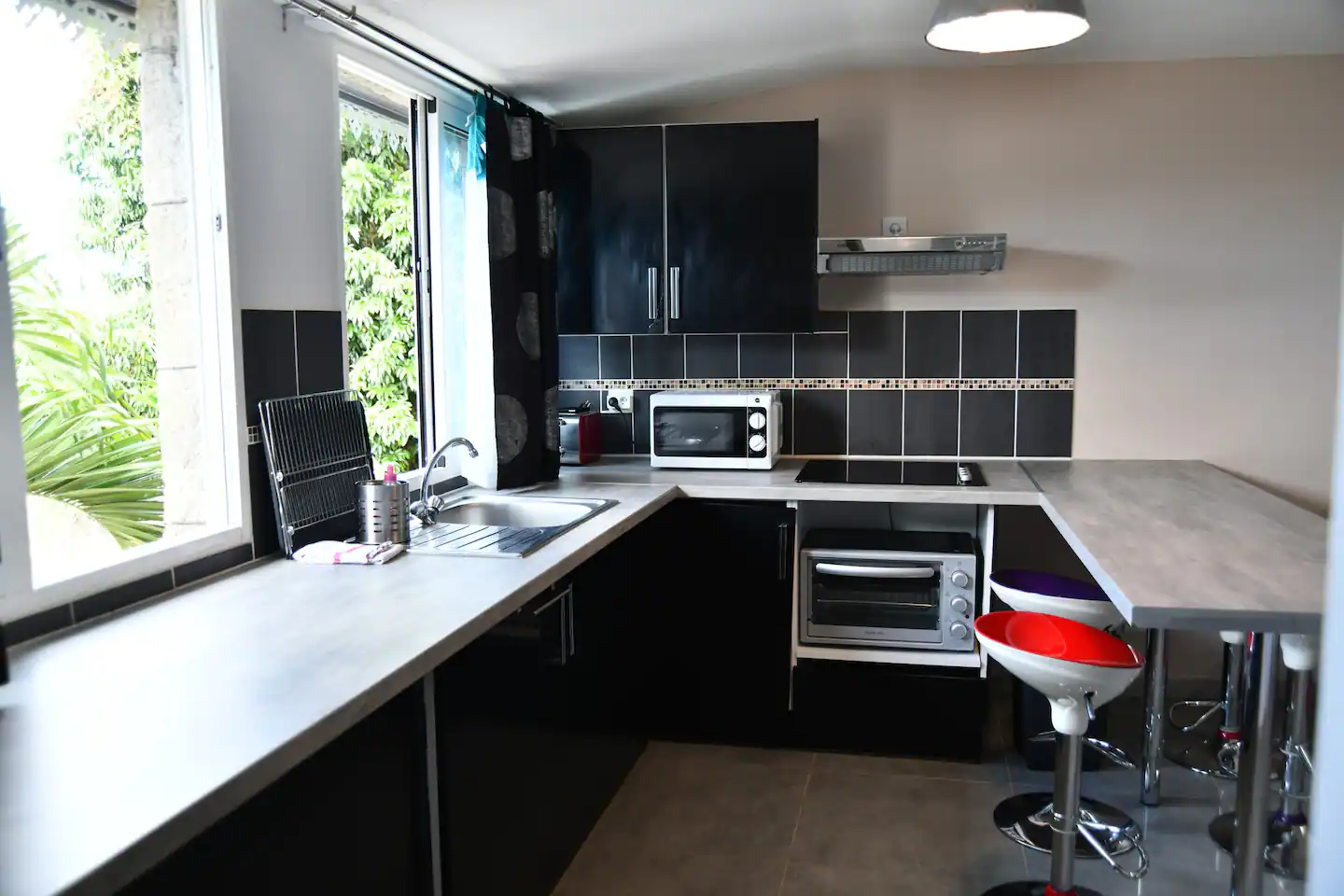 C’est un appartement cosy de 47 m² qui se situe au dessus du garage de nos propriétaires (discrets par ailleurs). Il est entièrement indépendant, avec une entrée privée.