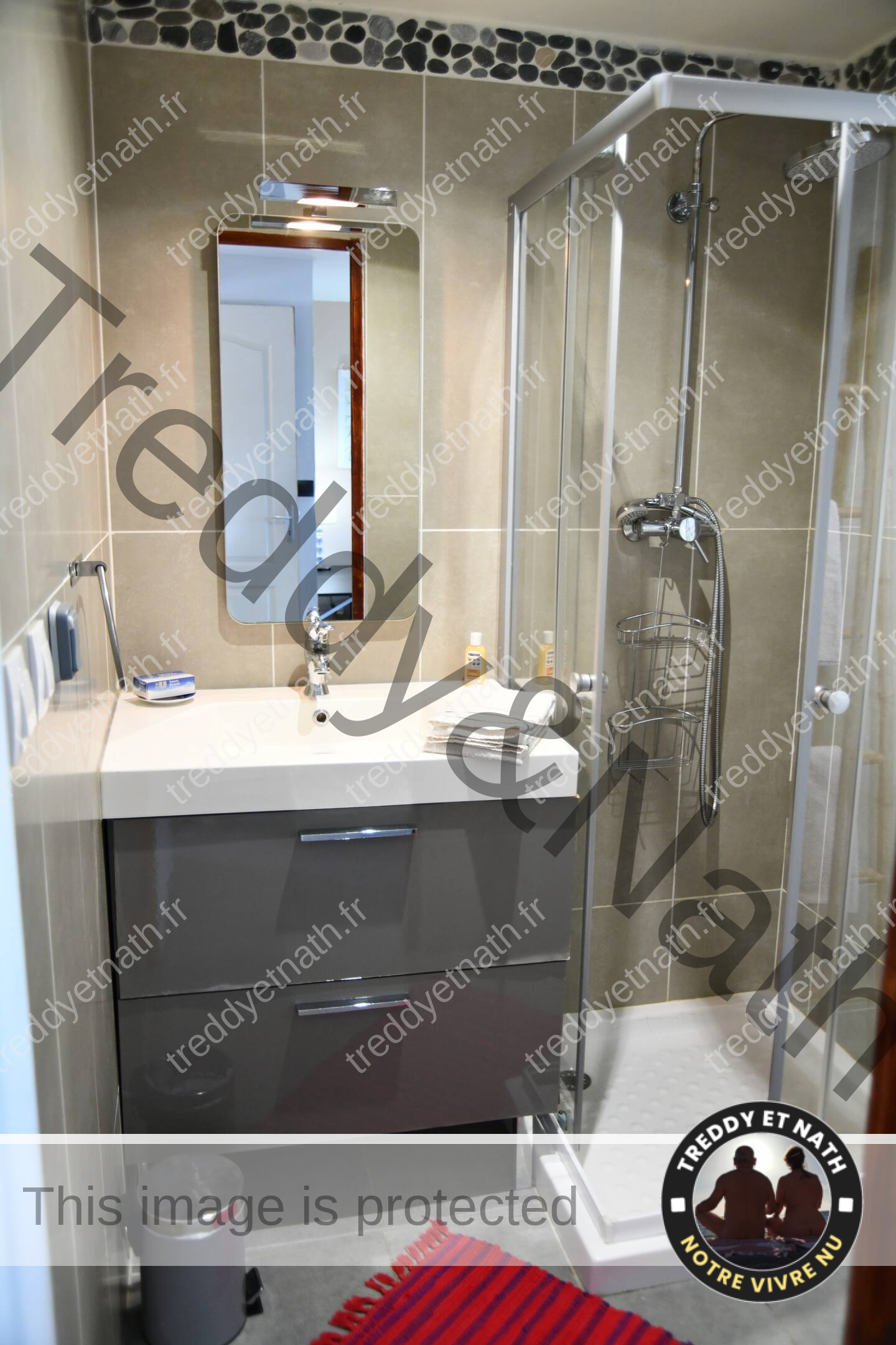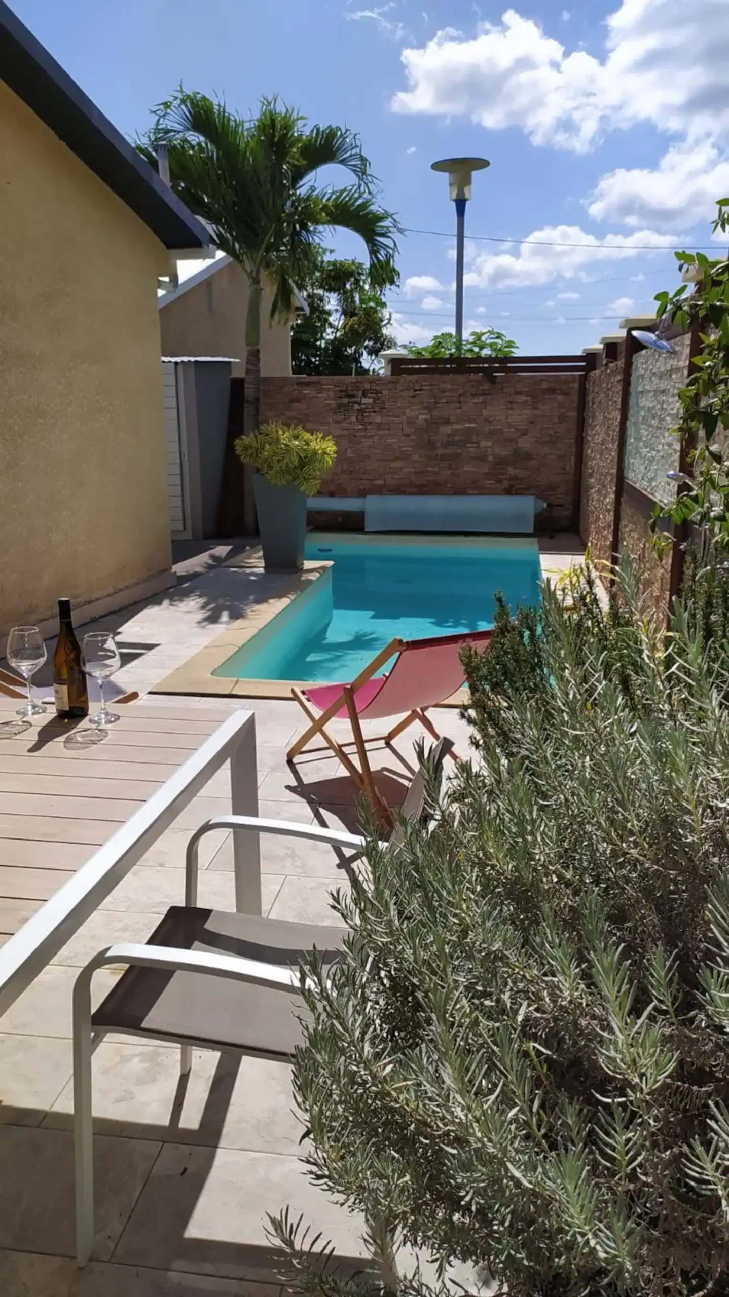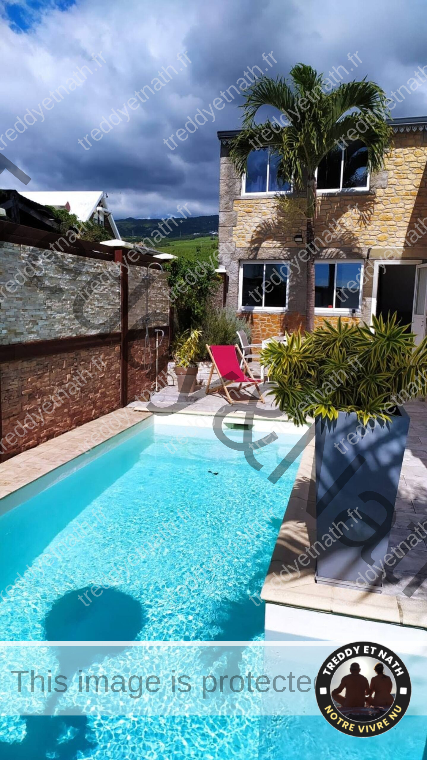 Il dispose d’une petite piscine privée (chauffée à 29 degrés) avec terrasse et sans vis-à -vis ce qui nous permet de pratiquer notre vivre-nu sans soucis.