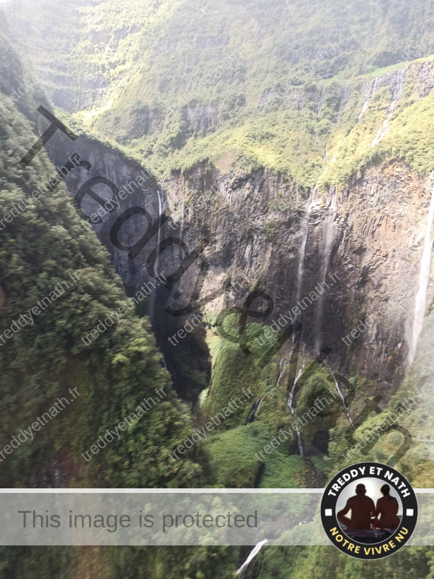 La découverte de paysages époustouflants alors que l’hélicoptère s’approche du cœur de l’île. Les cirques de Cilaos, Mafate et Salazien nous attendaient avec leurs remparts et crêtes. Le Trou de Fer ne tardera pas à nous offrir une vue magnifique sur ses cascades.